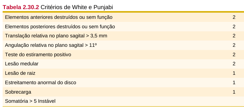 Critérios de instabilidade de White-Panjabi - fraturas coluna cervical