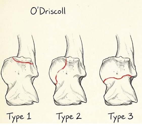 A classificação de O'Driscoll divide as fraturas do processo coronoide em 3 pela localização.